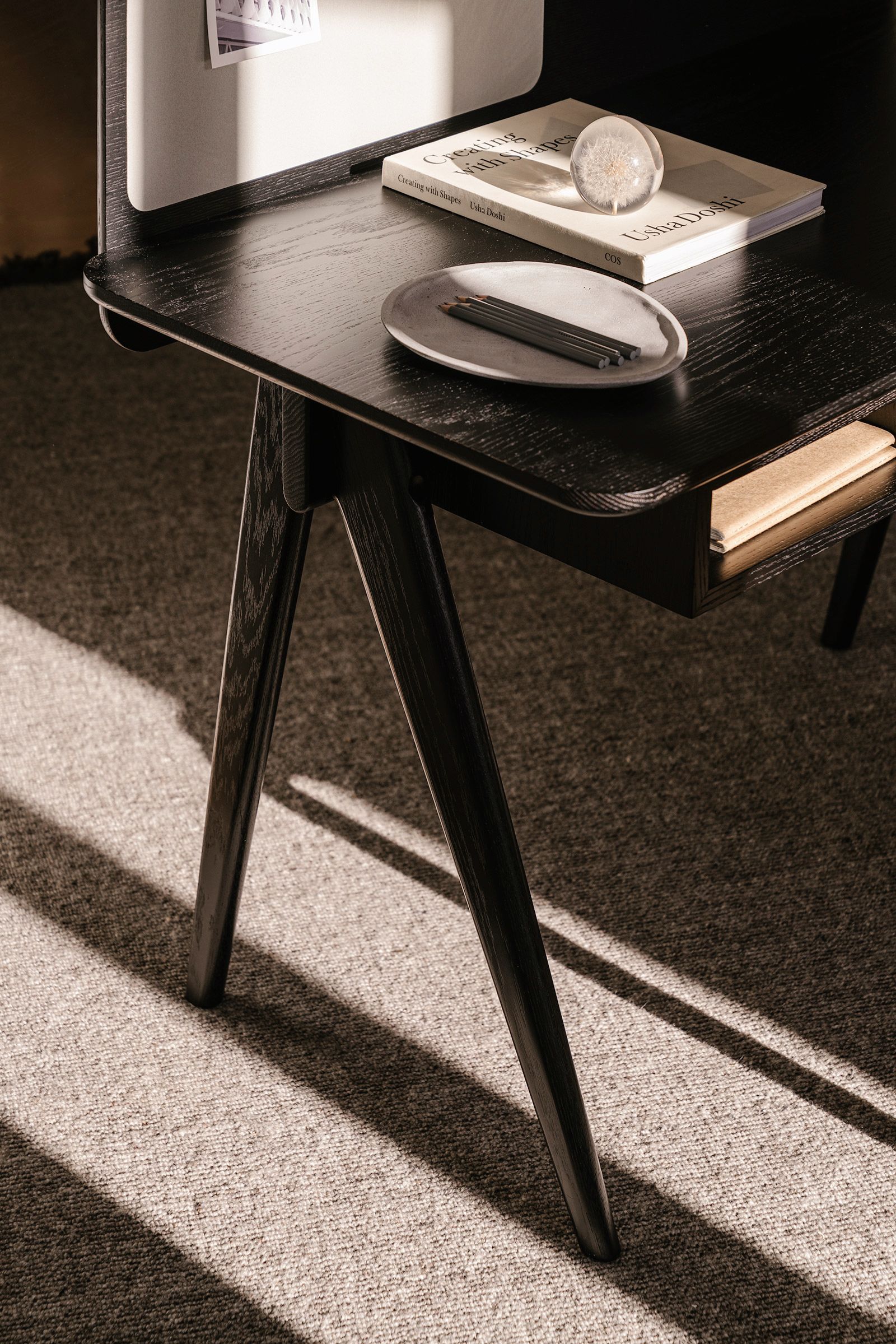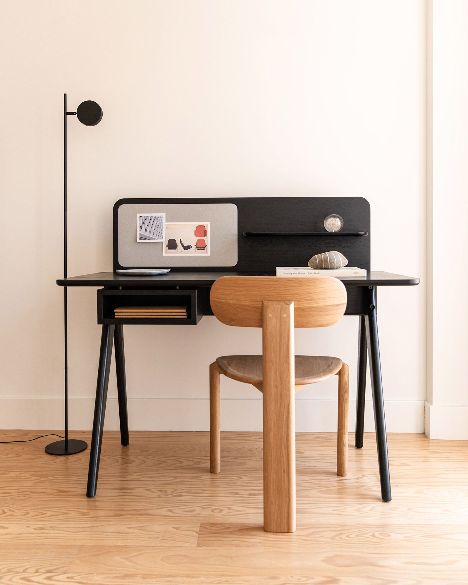 Based on a design approach rooted in “honest, clean, and simple” aesthetics, OEO Studio has streamlined the table desk typology to create a flatpack product that is easy to ship, assemble, and use without sacrificing its workmanship and versatile functionality. The sensibly crafted solid wood legs add a softer, well-rounded touch to the overall construction.