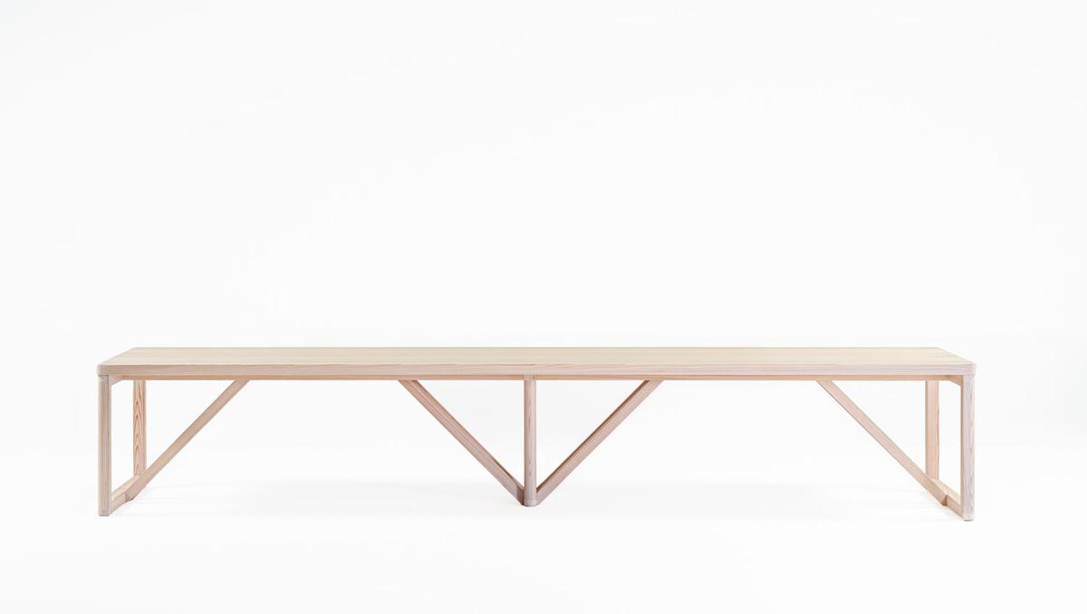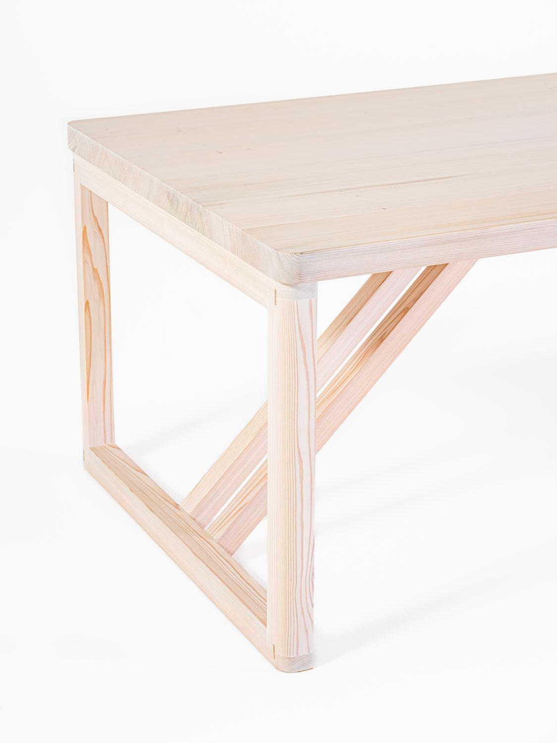 Inspired by Japanese Miyadaiku techniques, the Yoshino table collection features elegant wooden structures crafted without nails from light-soaped Japanese cedar. This design merges Japanese and Danish design sensibilities, reflecting a shared commitment to quality, meticulous attention to detail, and exceptional craftsmanship.